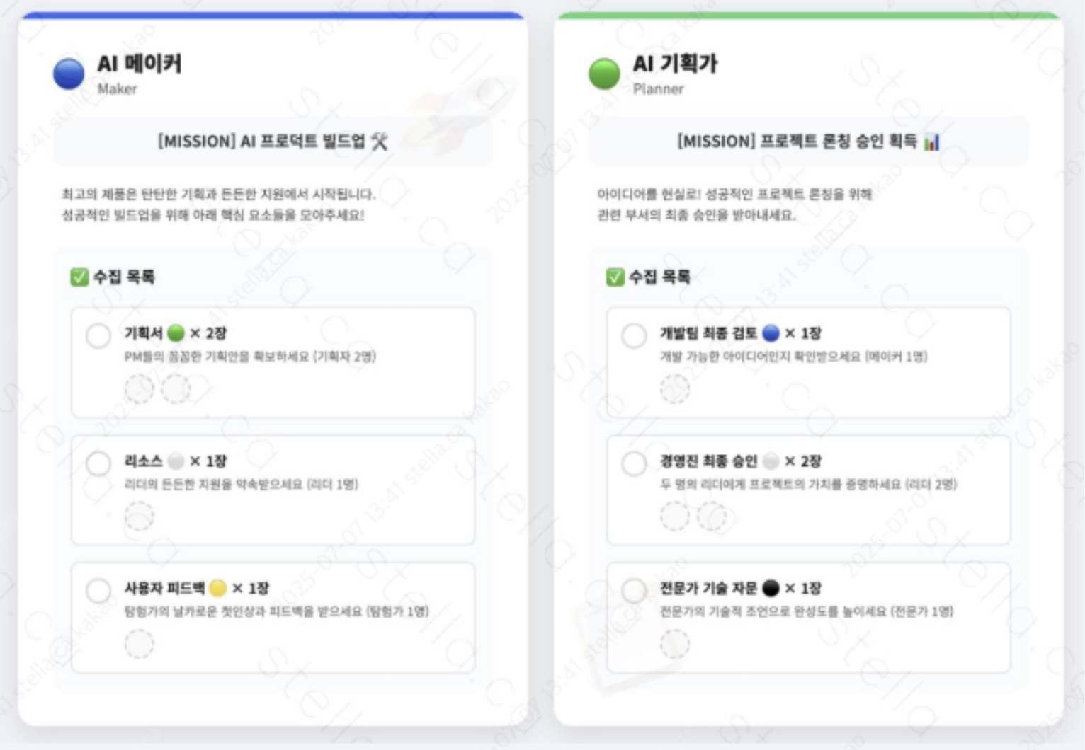 행사의 하이라이트였던 현장 이벤트 역시 AI의 도움을 받았습니다. 네트워킹의 재미를 더한 ‘미션 카드’의 세부 미션과 디자인은 Claude Code가 맡아 역할별 특성을 살린 결과물을 만들었고, 모두가 기다렸던 경품 추첨은 행사 직전 10분 만에 완성한 Flowith 추첨 앱을 활용하여 공정하고 흥미롭게 진행했습니다.